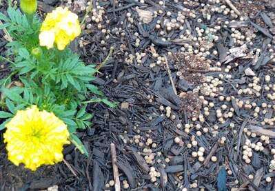 Bird’s nest fungi resemble tiny, gray to brown bird’s nests or splash cups with eggs. The nest is up to one-quarter inch in diameter. These fungi may grow in large areas of mulch, but they are not a problem.