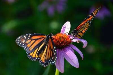 PRESS PHOTO COURTESY MOLLY LAURYTwo beautiful orange, black and white butterflies are enjoying this purple flower after being released at Luther Crest retirement community, South Whitehall, during a butterfly release ceremony to honor residents, loved ones and friends who recently died.