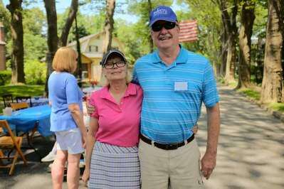 Neighbors who have moved away often return to celebrate Independence Day. Here, Maria Nathans, who lived on Sycamore Street, greets Craig Hynes, whose home was on Jennings Street.
