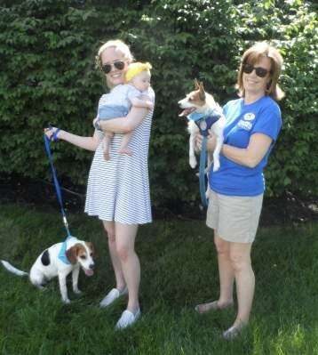 PRESS PHOTO BY AARON BERGERKayla Kastelnik of Bethlehem holds her daughter Norah Jean while walking Darla, a 2-year old beagle mix, in the shade. Betsy Wenger, a realtor for Coldwell Banker Heritage Real Estate in Allentown, holds Marty, a 3 ½-year-old Jack Russel mix, at Coldwell Banker's “Home is Where the Dog is” Adopt-a-Pet Day June 24. Both Darla and Marty are available for adoption at the Copyright - COPYRIGHT, 2010