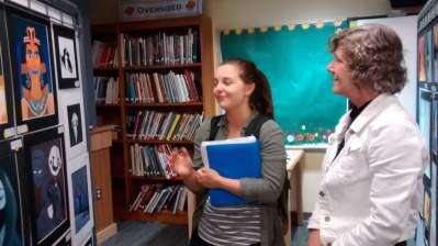German teacher Jan Sutermeister brought her classes to the library to view the art show.