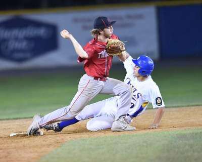 With one out in the ninth, Adam Mellinger was hit by a pitch, giving South Parkland a hole that it seemed they would use to climb their way through for another heroic win. Michael Jenkins followed with a well-hit ball to left-center that found open spaces. Mellinger steamed around the bases, with manager Tom Kahn waving him around third. A good throw had the ball at the plate ahead of Mellinger, but as the play continued, it appeared that catcher Albert Taylor may have juggled the ball slightly. The out call was made and the umpires refused to hear the pleas of Kahn and the call stood.