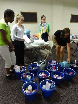 Families in the program are given a single room with two sets of bunkbeds, a dresser and a refrigerator. Each floor is equipped with a common kitchen, laundry area and a playroom for kids. Since families often do not bring many belongings, New Bethany Ministries provides them with “necessity kits” containing toiletries and hygiene products, which attendees helped assemble after the presentation.