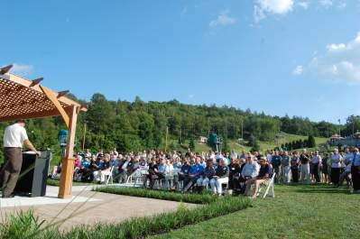 The occasion was a “Celebration Of Life” service for outdoors columnist and educator Bud Cole. On the last day of July, an estimated 250 sought shade at umbrella tables on the Summit Lodge patio. They wore name tags with images of fish (rainbow trout, large mouth bass, etcetera). Reminiscences, chuckles and banter about Bud were shared as they enjoyed a buffet and cold beverages.