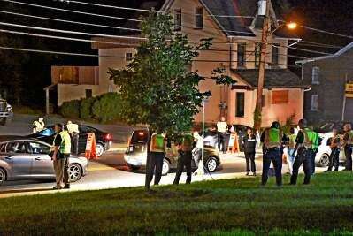 Several dozen law enforcement officers from communities throughout Lehigh County gathered at a Lehigh County DUI Task Force command trailer late on the evening of Aug. 4 along Broadway, for a combination citizen education and drunk driving enforcement detail that coincides every year with the first night of Musikfest activities in Bethlehem.
