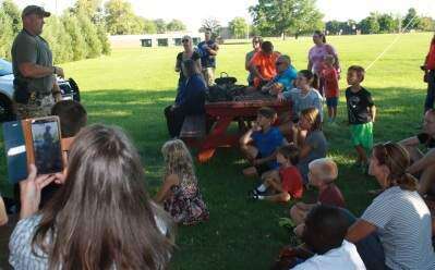 Officer Jeffrey Apgar talks about his role as Whitehall Township's police K-9 handler during a program honoring local heroes at Whitehall Township Public Library Aug. 8. Firefighters, ambulance personnel and others were honored for their service during the event.