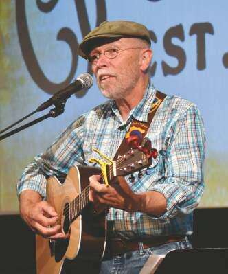Bill Valenti from Bend, Oregon sings “Steeples and Steel” at Martin Guitar Lyrikplatz August 8. Valenti, originally from eastern Pennsylvania, co-wrote the song with Susan Vitez from the Steelworkers' Archives. “Steeples and Steel” pays tribute to the European immigrants who settled in South Bethlehem. Copyright - &Copy; Ed Courrier