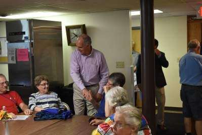 press photos by Julia FritzSen. Bob Casey, D-Pa., greets Meals on Wheels of Lehigh County volunteers after giving a talk on the importance of such an organization. Casey visited the volunteers Aug. 10 at the meal pickup site at Trinity Baptist Church, 689 Hillview Road, South Whitehall.
