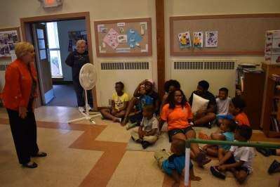 Breakfast and backpacks Tweet Published September 13. 2017 12:00AM by The Press Whitehall Area Rotarian Laura Long talks to the young participants in the Whitehall Area Hunger Initiative summer breakfast program, before presenting them with backpacks filled with school supplies.