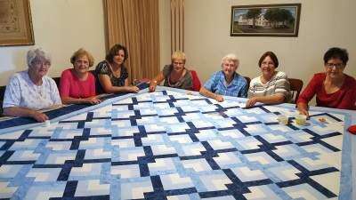 PRESS PHOTO COURTESY GLORIA ZIMMERMANWeisenberg Lowhill Township Historical Society quilters Sally Drabick, Donna Snyder, Michele Quier, Barbara Moyer, Gloria Hausman, Karen Rex and Althea Hahn have been busy preparing their second quilt since July. The queen-size quilt is a lovers knot design in blue-and-white colors. Tickets may be purchased from any of the quilters, board members or by calling