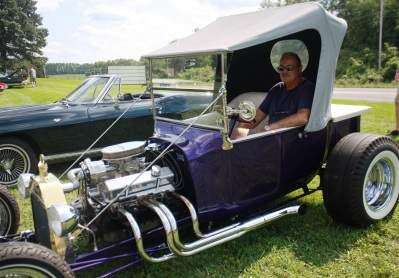 PRESS PHOTOS BY STEPHANIE RAPHUNPaul Sickles showcases his purple and white 1923 Ford T-Bucket during Faith Evangelical Lutheran Church's Wheels of Faith car show, held Aug. 19 at the Whitehall church. Classic car owners from across the Lehigh Valley and beyond registered their vehicles in the annual event.