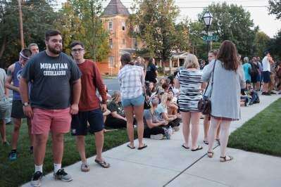 Students, many from athletic teams back to campus early, gather on Main Street prior to the lighting.