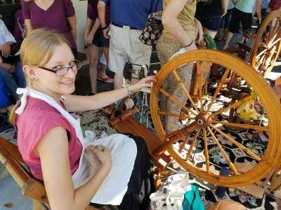 PRESS PHOTO BY LINDA WOJCIECHOWSKICarolyn Hoffman, of Macungie, demonstrates her skill at spinning yarn from wool at the Lehigh Valley Fiber Festival Sept. 23, at the Wildlands Conservancy in Emmaus. She is a member of the Second Street Spinners group, which meets at the Hellertown Library.