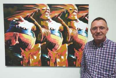 Visiting University of Hong Kong professor Ian Holliday brought a selection of 10 contemporary paintings by Myanmar artists for the exhibit, “Altered State: Painting Myanmar in a Time of Transition” in the Galleria, Baker Center for the Arts, Muhlenberg College.
