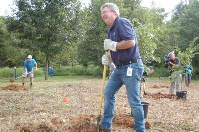 On Sept. 13 representatives from the company along with staff members of the Wildlands Conservancy planted trees at the Pool Wildlife Sanctuary, Emmaus, one of the Wildlands Conservancy sites, to open the program.