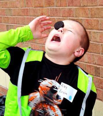 PRESS PHOTOS BY LINDA DEIBERTNorthwestern Middle School sixth-grade students met after school for a time of fun games and getting to know each other on Sept. 8. They enjoyed Hula-Hoop games, sack races, marshmallow toss, digging for gummy worms and attempted to roll an Oreo into their mouths. Riley Ervin attempts to catch the Oreo in his mouth.