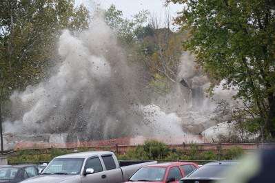 Big blast on the bridge Tweet Published October 18. 2017 12:00AM by The Press Above: Dust elevates in the air Oct. 11 as dynamite takes down two of the arches of the Coplay-Northampton Bridge.