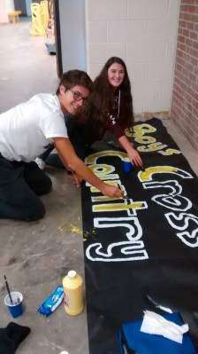 PRESS PHOTOS BY ANNA GILGOFFRefusing to be hampered by the renovations, Joseph Pleban and Sam McGinley found a spot to work on signs.