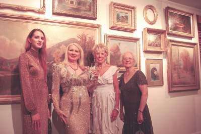 PRESS PHOTOS BY PAUL WILLISTEINModeling Fashions by Miss Lorita's Vintage Fashions at opening reception for “Gilded: Objects of Luxury,” Kemerer Museum of Decorative Arts, Bethlehem, with gowns symbolizing metal-ware are, from left, Elizabeth Page, Lansdale, representing Copper; Cindi Greatsinger, Bethlehem Township, Gold; Charlotte Buckenmyer, Lower Saucon Township, Silver, and Lorita Musselman,