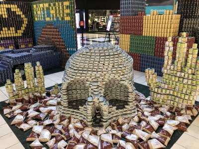 Press photo by Stacey KochCanstruction - groups of architects, engineers, contractors, designers, building product manufacturers and students - have created and constructed structures made from canned food. Pictured here, the skull display has a total of 3,480 cans. All of the food used was donated to Second Harvest Food Bank. The works of art were on display until Oct. 20 at Lehigh Valley Mall,