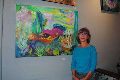 PRESS PHOTO BY SUSAN BRYANTMel Berezny of New Tripoli is shown with her painting “Sea Monsters” Sept. 29 at Blink Optical, Allentown.