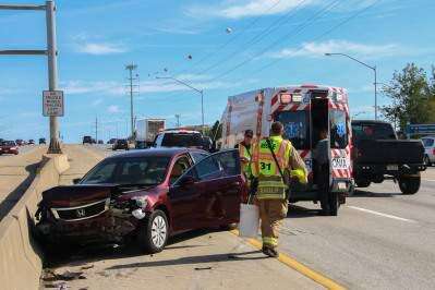 PRESS PHOTO BY TIM SINGLESFirefighters from Western Salisbury Fire Department responded to a reported motor vehicle accident on Interstate 78 eastbound around 12:30 p.m. Oct. 22. The vehicle was on the left shoulder of the interstate and forced the closure of the left passing lane. The driver of the vehicle was injured and was being treated by medics from the Cetronia Ambulance Corp. Pennsylvania