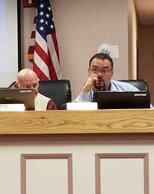 Hellertown Mayor Richard Fluck and Council President Thomas Rieger listen to discussions during the Oct. 16th council meeting.