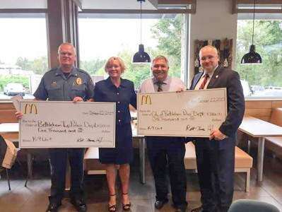 Press photos courtesy of Rober HughesThe Nazareth Pike McDonald's® and Robert Hughes, McDonald's owner/operator, recently reopened on Oct. 12, welcoming guests to the newest restaurant in the Greater Philadelphia Region. Joined by State Senator Lisa Boscola, members of the community, and other McDonald's owner/operators, Hughes donated $1,000 to the City of Bethlehem and Bethlehem Township Police