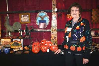 PRESS PHOTOS BY DEBRA PALMIERIThe Antique Dealers Association of Berks County presented its annual Kempton antique show and sale Oct. 21 at the Kempton Community Recreation Center. Verna Stump of Sinking Spring, Berks County, was in Halloween spirit with the attire she sported at her stand at the show.