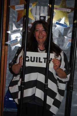 PRESS PHOTOS BY SUSAN BRYANTJulie Trumbauer, workforce coordinator with Lehigh Carbon Community College, Schnecksville, holds up a guilty sign Oct. 25 at the Muscular Dystrophy Association Lockup fundraiser at Carmel Kitchen and Wine Bar, South Whitehall Township.