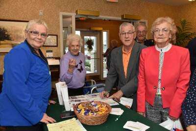 PRESS PHOTOS BY LOU WHEELANDState Sen. Pat Browne, R-16th, and state Rep. Gary Day, R-187th, sponsored a senior expo Oct. 12 at Country Meadows, Upper Macungie Township. Representatives from more than 30 organizations were on hand to help seniors with choices from in-home care to safe driving. Ellen Millard Kern, chief of staff with Browne's office, greets Susan Krivenko, a resident at Country Copyright - Lou Wheeland