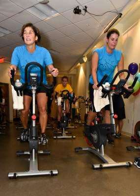 PRESS PHOTOS BY LOU WHEELANDLisa Fiore, council director and Jessica Younker, program assistant, both with Girls on the Run, work up a sweat at the fit fest at Steel Fitness, South Whitehall Township. Copyright - Lou Wheeland