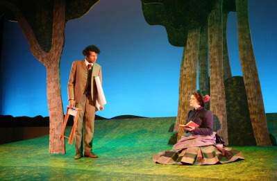 Seurat’s large work, “A Sunday Afternoon on the Island of La Grande Jatte” (81.7 in. x 121.25 in.; oil on canvas; 1884 - 1886), is inspiration and centerpiece for the musical, with a reproduction of the work lowered to hang center stage, as well as the painting being recreated by the actors in costumes nearly identical to the attire in the painting by Costume Designer Matt Riley and posing in approximately the same positions as in the painting even as the stage lighting by Lighting Designer Susan Hamburger dapples and changes and plays tricks with our eyes, not unlike Seurat’s painting.
