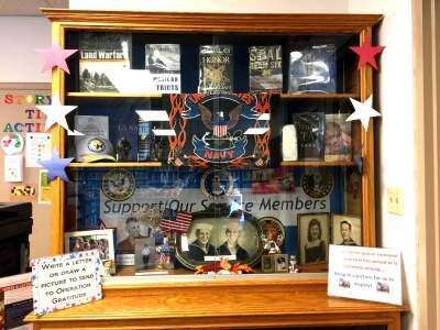 Stop by the library to see the veterans display or for more information on the letter-writing campaign. Children were asked to bring pictures of their family members who served in the military for the display.