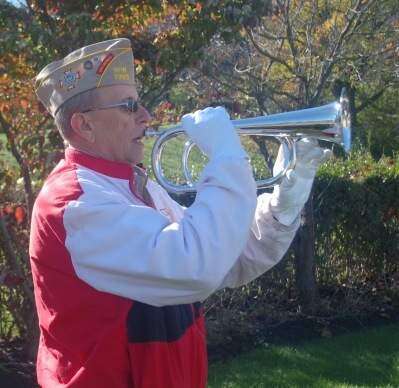 PRESS PHOTOS BY AL RECKERAbove: Bugler Jeff Snyder begins a solemn Veterans Day ceremony hosted by Veterans of Foreign Wars Post 7293, Egypt, at the Cementon veterans memorial Nov. 11. Similar programs were held at Egypt's Doughboy World War I monument and the Navy F-16 fighter jet memorial.