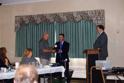 PRESS PHOTOS COURTESY NOVAJason Breidinger, board of director and public relations chair, presented Donald Steffy with an award for more than 25 years of dedicated service as a volunteer board of director at the Northern Valley EMS annual round table luncheon on Sept. 29.