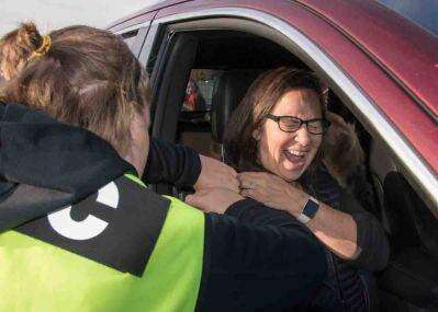PRESS PHOTO BY LOU WHEELANDKathleen Malek is not impressed by the process as Physician Assistant Amy Jedlove does the honors of giving her a flu shot at Lehigh Valley Health Network's drive-thru event Nov. 4 at Dorney Park, South Whitehall. Copyright - Lou Wheeland