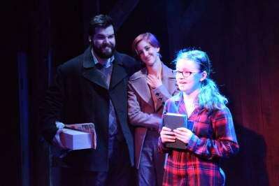 The other actors in the five-member ensemble are aptly-cast, and fit their characters well. Jane’s Scrooge-like husband Walter (Daniel Pippert) provides a non-holiday subplot as the cell-phone dependent modern who gets hysterical when he discovers he doesn’t have “service” to call AAA. He doesn’t recognize the land-line telephone hanging on the wall, and needs help dialing.
