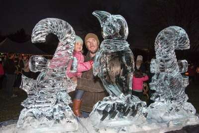 Lhöste Durflinger, 2, and dad, Jake, of Bechtelsville, were intrigued by this year's ice sculpture. Mom Page is South Whitehall's Recreation Program Specialist. (Additional photos on Page A2.) Copyright - Lou Wheeland