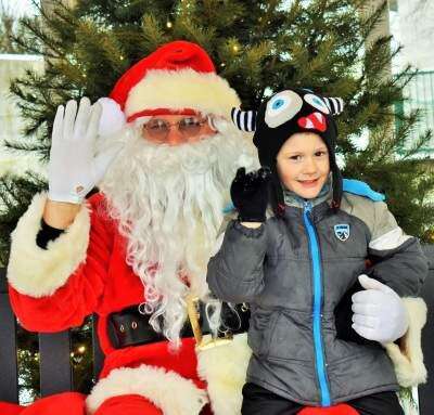 PRESS PHOTO BY TINAMARIE MARTINJason Walter, of Northampton, chats with Santa about his Christmas wishes during a visit Dec. 16 at the Community Plaza in Coplay. Children under the age of 12 received a free photo with Santa and a free breakfast at Samuel Owens Restaurant & Bar, Chestnut Street.