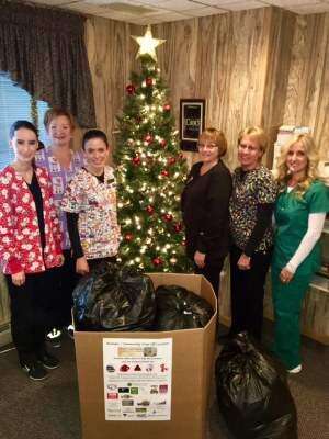 PRESS PHOTO COURTESY PARKLAND DENTALParkland Dental Center, PC, 4525 Spring Hill Drive, Schnecksville, recently collected 27 bags of coats and blankets to support Lehigh Valley Business Group's Project Keep Warm. Parkland Dental employees Mariah Fegely, Keri Dimmig, Cory Miller RDH, Debra Rehrig, Linda Carter and Connie Rice, office manager, gather around a box of collected coats and blankets.