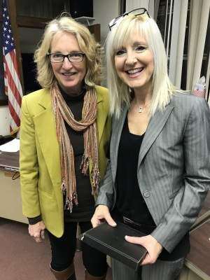Denise Carrigan, right, receives the 2017 Bath Historical Architectural Review Board Award for improvement of her property in Bath. Presenting the award is Bath Borough Councilwoman Carol Bear-Heckman.PRESS PHOTO BY BILL LEINER JR.