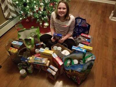 When she and her parents took her collection of donations to the food bank Dec. 20, there was far more than a laundry basket full of items.