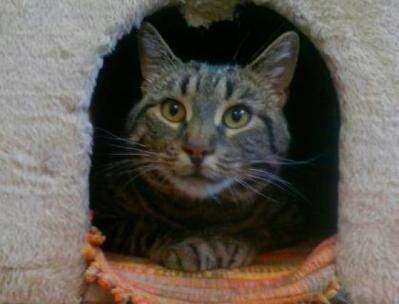 Milo is a 5 years old. He came to the shelter when his owner passed away. He is a big cat, weighing 23 pounds. He loves to play and is very sweet. He is a perfect lap cat.
