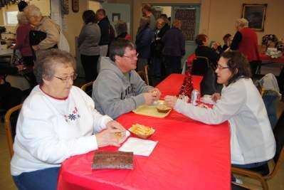 PRESS PHOTOS BY SUSAN BRYANTJulia Barna of North Whitehall and Barb and Mike Anglestein of Schnecksville enjoy a lunch of hot dogs, french fries, burgers and noodles Dec. 3 at the Northern Valley Ambulance Ladies Auxiliary holiday shop at the ambulance headquarters in Ormrod.