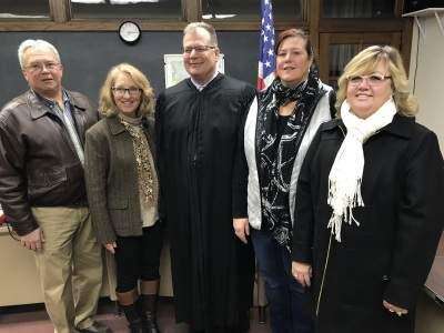 PRESS PHOTOS BY BILL LEINER JR.Above: Bath Borough council members and mayor are sworn in by Northampton County Judge Emil Giordano during Bath's 2018 reorganization meeting Jan. 2. Pictured, from left, are Anthony Kovalovsky, Carol Bear-Heckman, Giordano, Michele Ehrgott and Mayor Fiorella Reginelli-Mirabito.