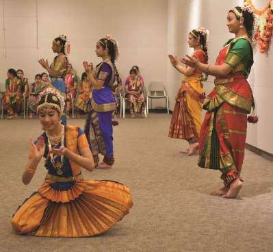Press photos by Ed CourrierIn the foreground, Aishwarya Gowrishankar takes her turn with a solo, as the rest of the ensemble dances in unison, during a performance at Allentown Art Museum Dec. 21, 2017. Behind her, from left, are Kavita Shah, Krisha Sharma, Anika Agarwal and Aishani Agarwal. Copyright - &Copy; Ed Courrier