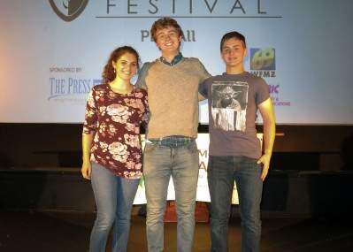 PRESS PHOTOS BY C. RICHARD CHARTRANDNorthwestern High School students Morgan Moss, Jackson and Harrison Bernard won second place for their film “Family Curse” in the recent student film festival at Emmaus Theater. Sponsors for the film festival were Lehigh Valley Press, PenTeleData, WFMZ 69 News, Service Electric and Clark Media.