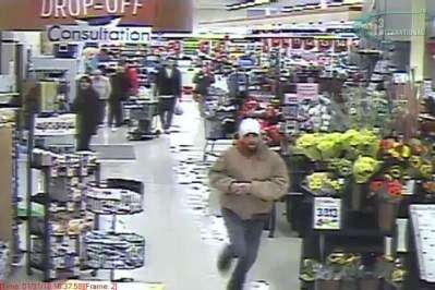PRESS PHOTOS COURTESY CRIME STOPPERS This photo shows the man wanted in connection with the robbery of an elderly man at the Weis Market, Schneckville, as he runs near the flower section.