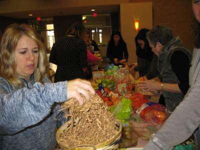 The Sisterhood of Temple Beth El, South Whitehall, gathered on Jan. 21 to make fruit baskets that would be donated to senior Jewish residents of the community.
